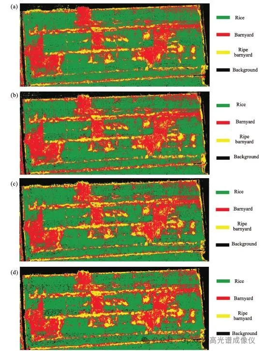 高光谱成像技术的独特优势:结合了二维成像技术和光谱分析技术,具有分辨率高、信息量大、检测速度快等优点。无人机高光谱设备具有丰富的光谱信息,在杂草制图方面具有巨大的应用前景。基于低空遥感稻田环境下的稗草识别更贴近实际生产情况,杂草空间分布图的制作有利于指导精准施药。